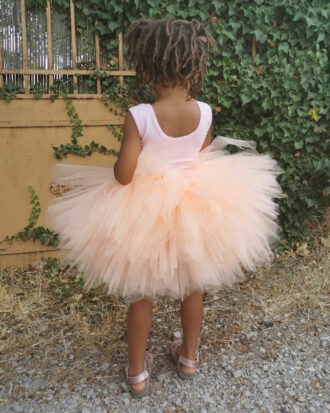Le tutu Melon une jolie couleur tendre claire et peps à la fois. La taille est réglable par un ruban