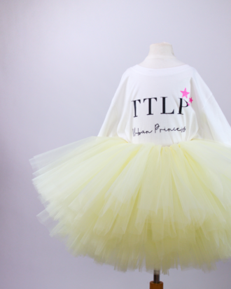 Un tutu solaire et lumineux, confectionné à la main. Le tutu court Jaune Zeste apporte fraîcheur, joie et volume aérien. Ceinture ajustable
