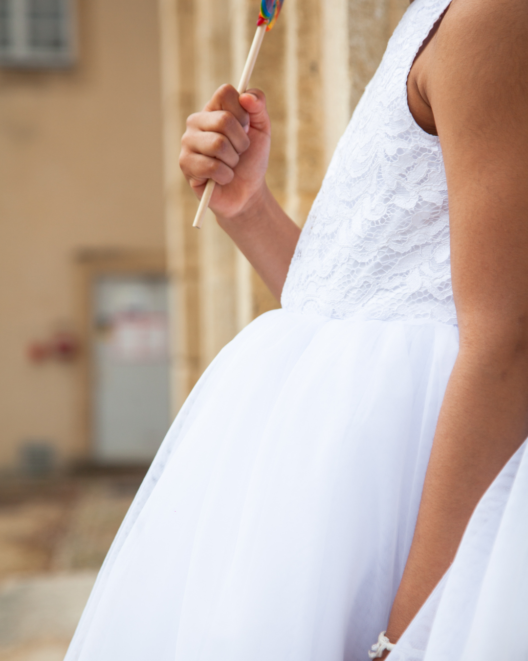 Le haut en dentelle de haute qualité apporte finesse et sophistication, contrastant avec la légèreté du tulle soigneusement travaillé en superposition.