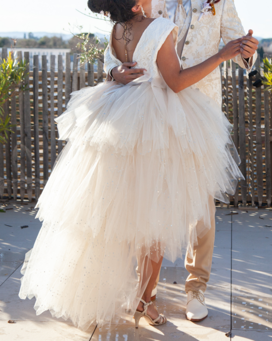 Chaque tutu est confectionné artisanalement dans mon atelier, avec un travail précis du tulle pour garantir volume, légèreté et tenue. Il peut être porté pour une cérémonie, un mariage, un anniversaire chic ou un shooting éditorial.