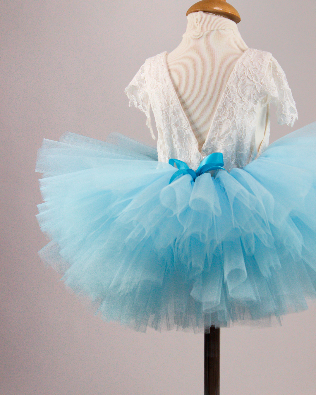 Bleu céleste est une pièce iconique de l’univers Tutu la Praline. Un tutu court au volume aérien, pensé comme une sculpture textile, où la légèreté du tulle mat rencontre la douceur d’un bleu céleste lumineux, entre vert d’eau et ciel d’été.