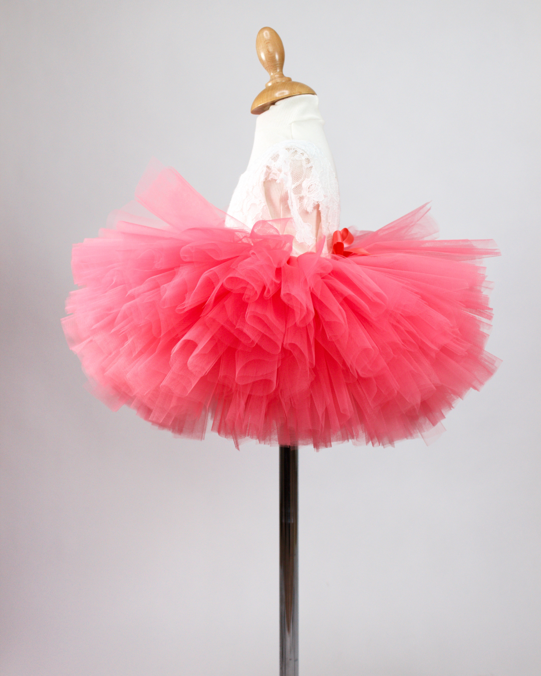 Entièrement fait main dans l’atelier Tutu la Praline, ce tutu est travaillé en superpositions de tulle fin pour offrir un volume aérien, structuré et vivant.