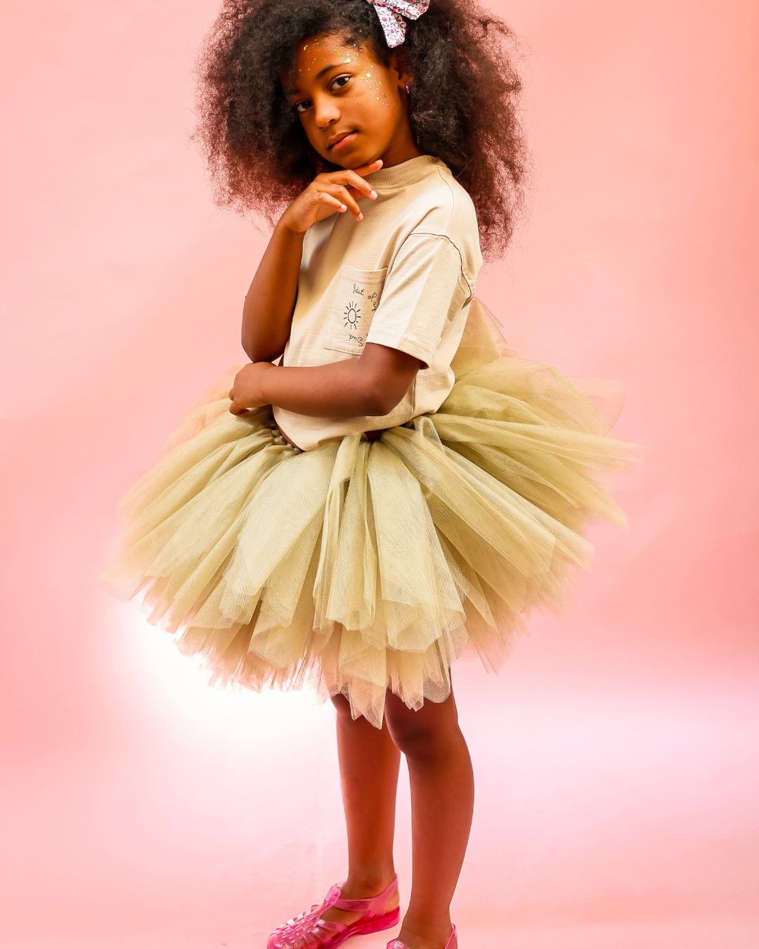 Le tutu court kaki urbain réinvente l’allure TTLP avec une intensité moderne. Sa couleur kaki, profonde et élégante, apporte une touche résolument mode, tout en gardant l’identité aérienne et généreuse des volumes TTLP.