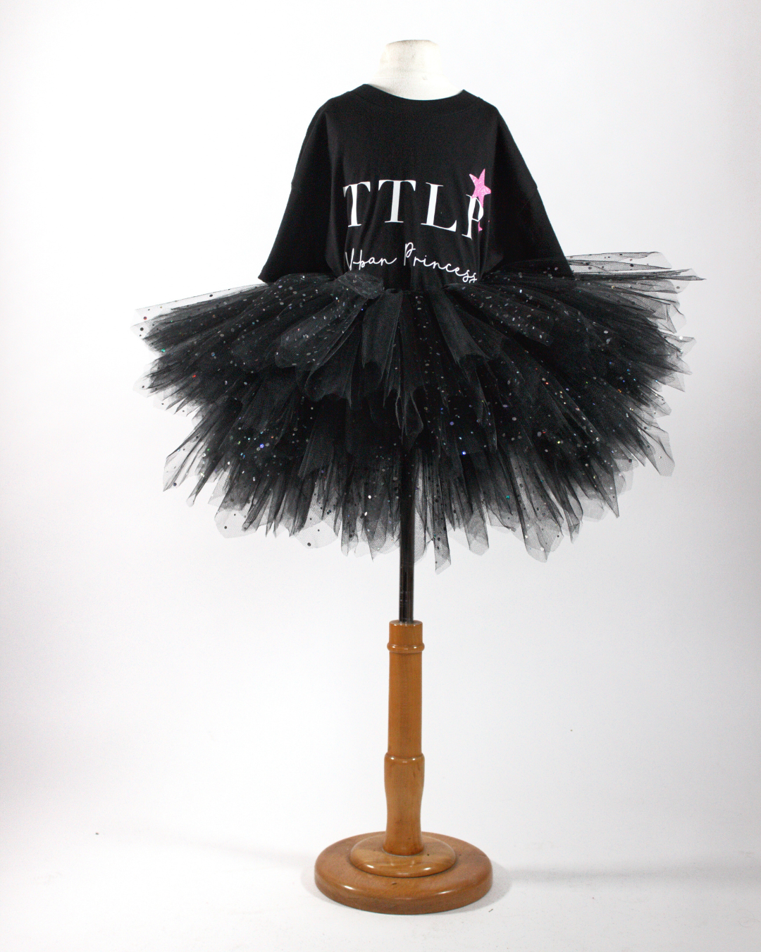 Le Tutu Noir Élégant Pailleté est une pièce signature à l’allure résolument mode.