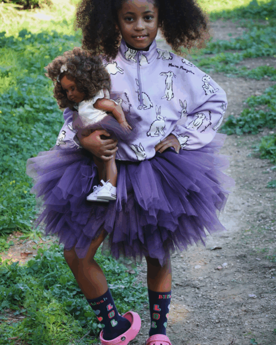 Porté avec un sweat oversize, des bottines ou même des baskets, le tutu “Prune Velours” incarne à la fois la grâce, le caractère et la modernité. Un incontournable de la collection, symbole de liberté et d’imaginaire.