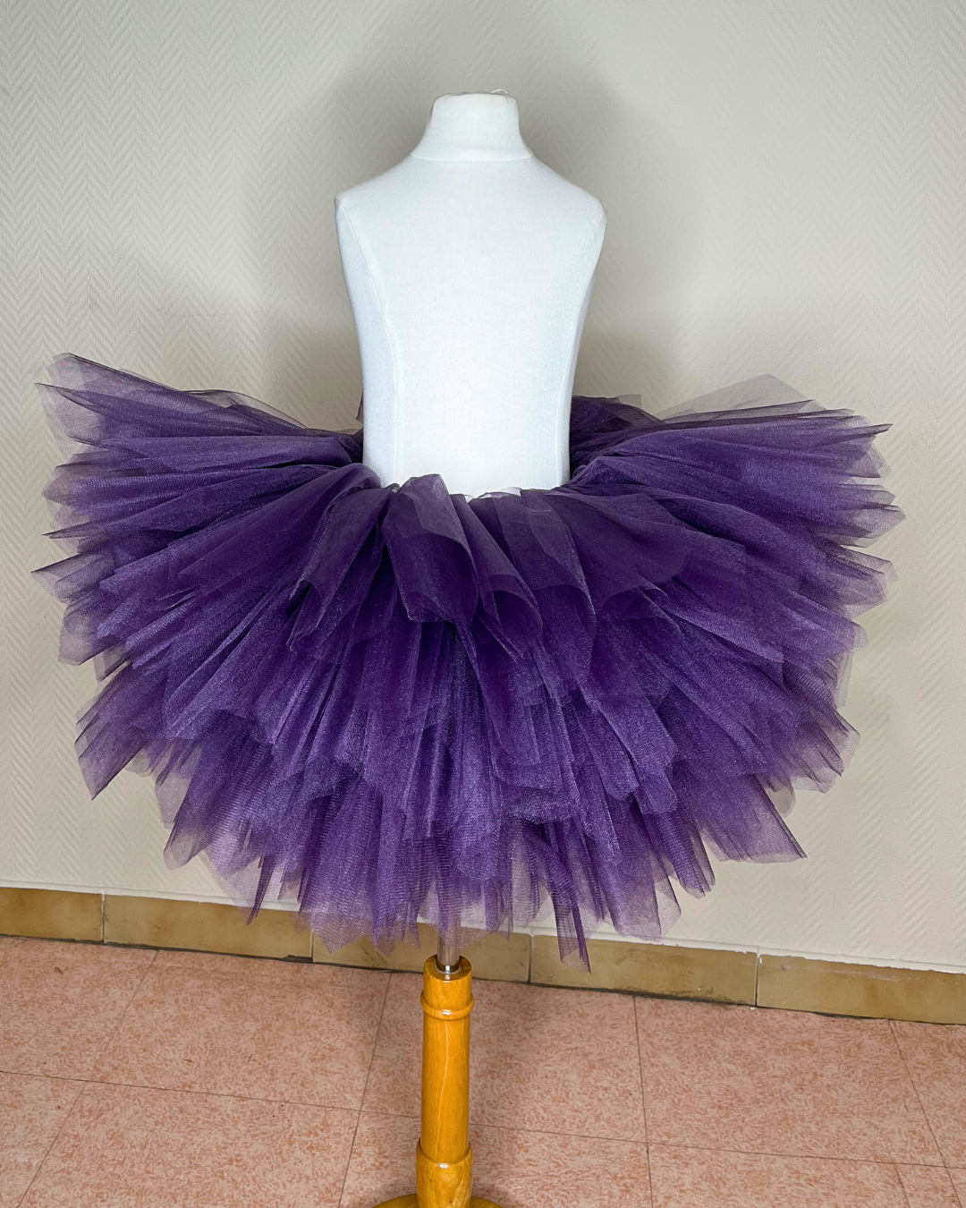 Entièrement confectionné à la main dans notre atelier, ce tutu se distingue par la richesse de sa teinte prune profonde, sublimée par des nuances légèrement iridescentes qui rappellent le velours et la lumière d’automne.