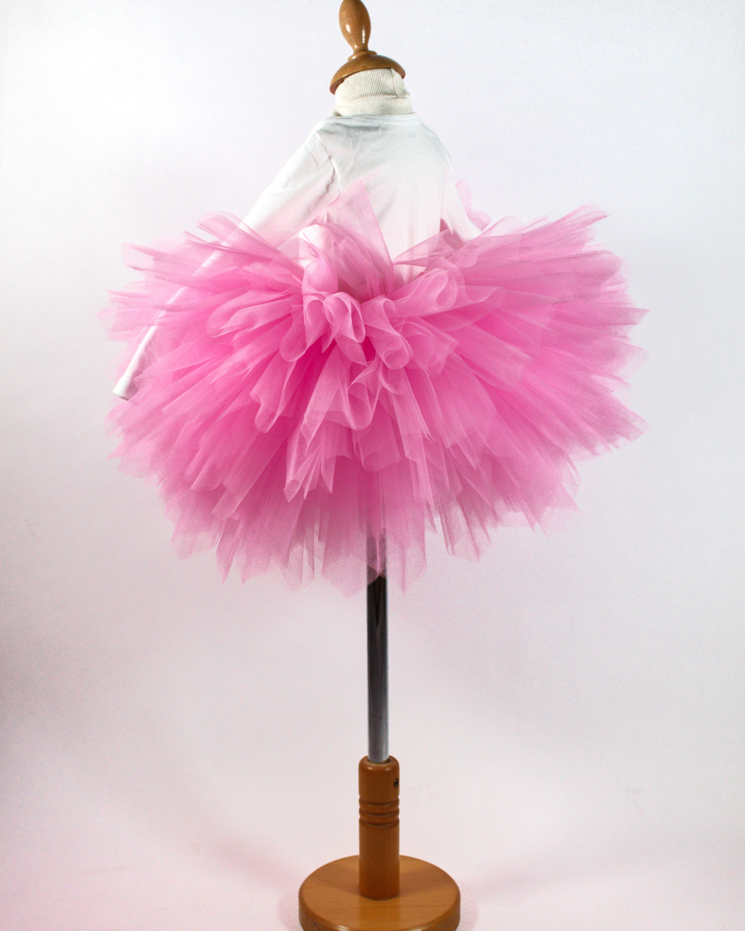 Confectionné à la main dans l’atelier Tutu la Praline, le Tutu Rose Star est composé de plusieurs couches de tulle fin soigneusement assemblées pour créer une silhouette spectaculaire, sans rigidité.
